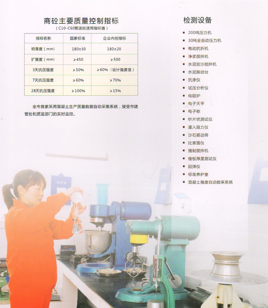 公司按照對每一方混凝土負責,對每一個工程負責,對每一個客戶負責,讓每一個客戶滿意的精神,以雄厚的技術力量,完善的質量保證體系,超強的綜合實力與您牽手,譜寫合作雙贏新篇章。